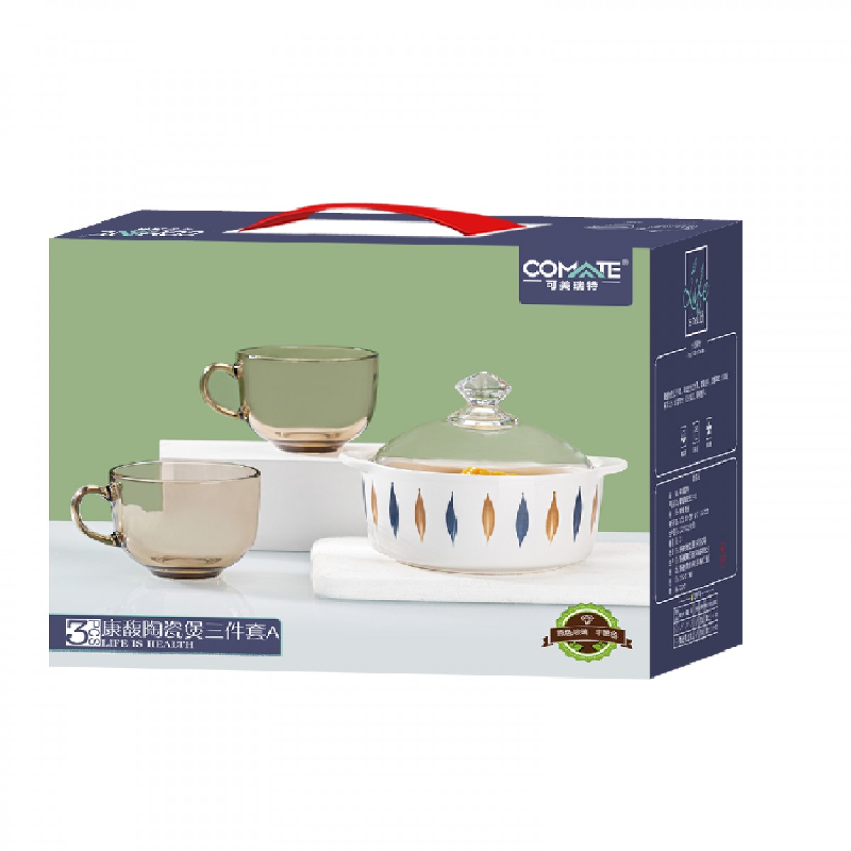 可美瑞特(COMATE)康馥陶瓷煲三件套A 煲/1200ml 杯/480ml YTKFTCB/LA3