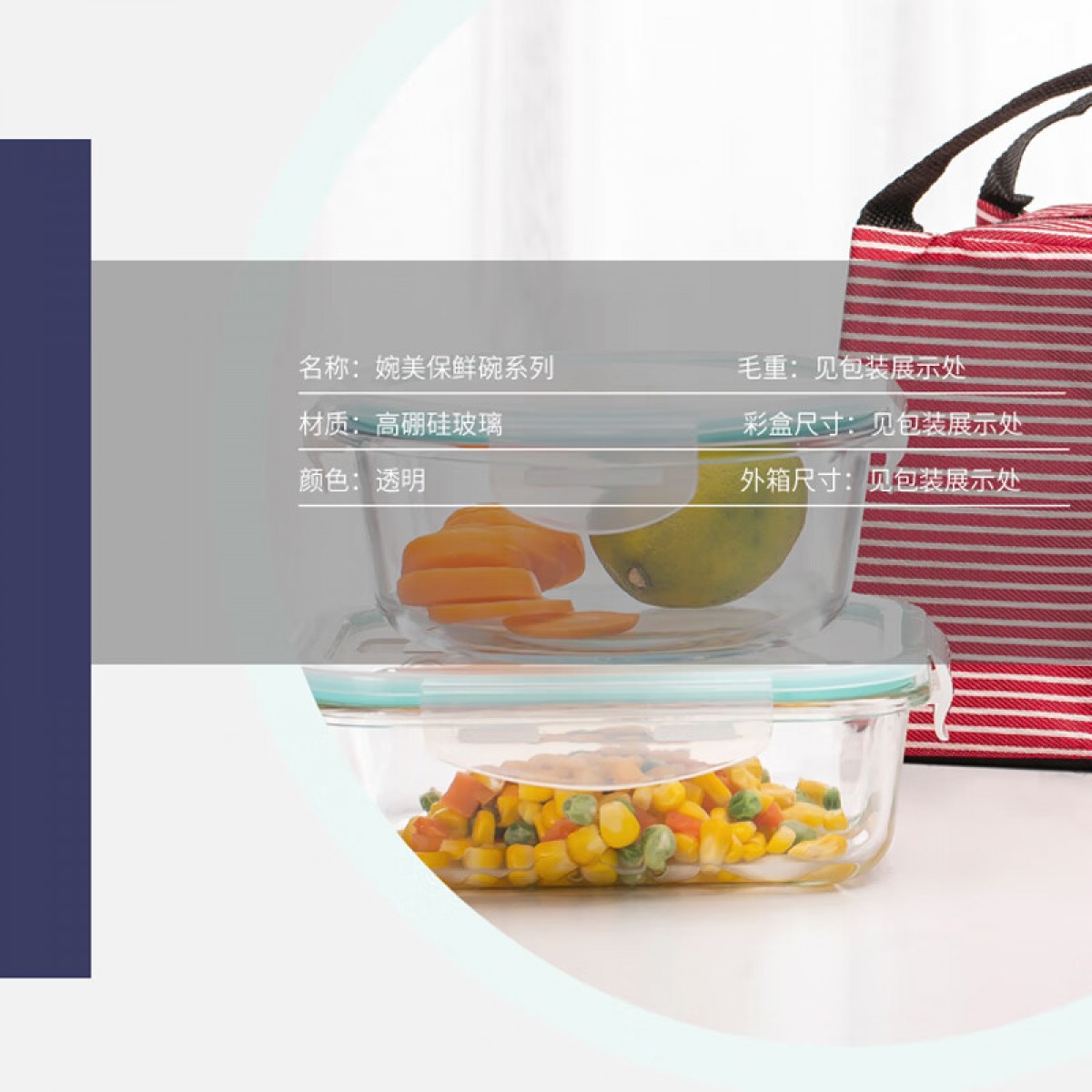 商品名称:可美瑞特(COMATE)婉美保鲜碗两件套 圆形660ml*1+长方形680ml*1+布包*1 YTWMBXW/L2