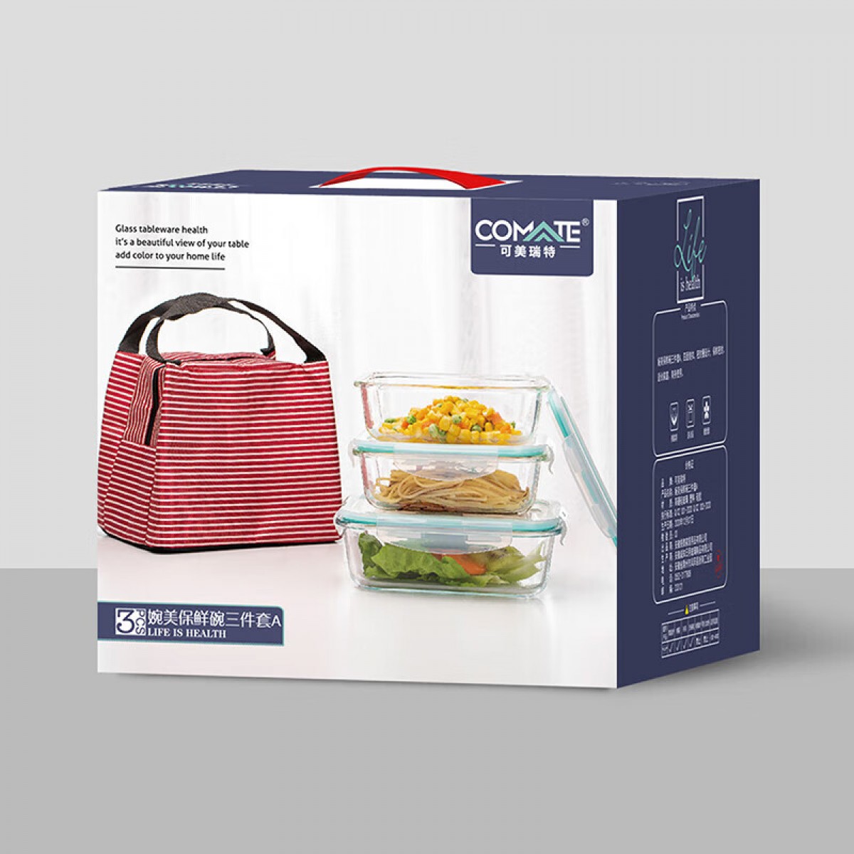 可美瑞特(COMATE)婉美保鲜碗三件套A 长方形680ml*2+长方形1060ml*1+布包*1 YTWMBXW/L3A