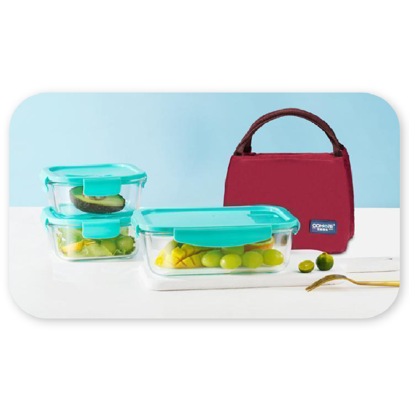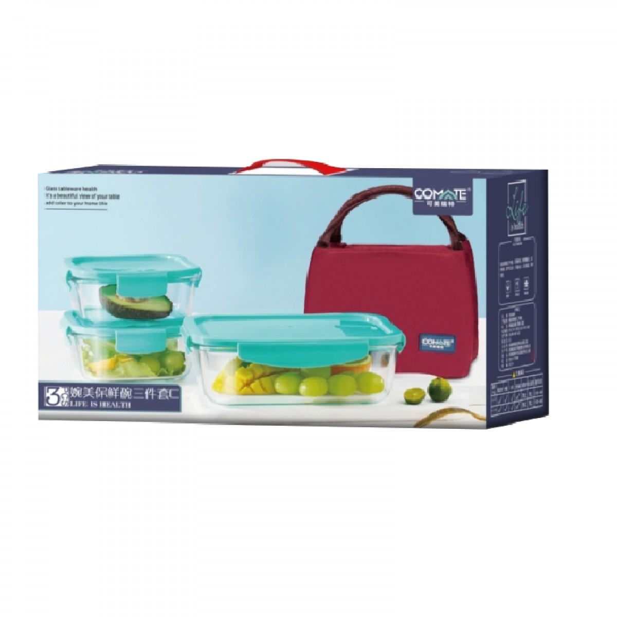 可美瑞特(COMATE)婉美保鲜碗三件套C 正方形800ml*2+长方形1500ml*1+布包*1 YTWMBXW/L3C