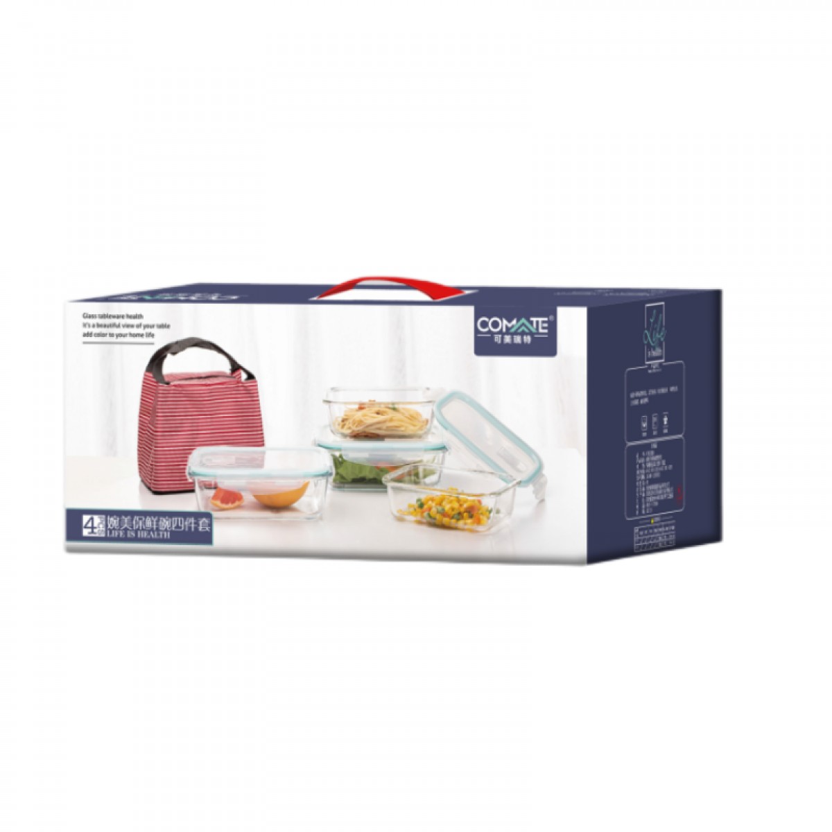 可美瑞特(COMATE)婉美保鲜碗四件套 长方形680ml*2+长方形1060ml*2+布包*1 YTWMBXW/L4