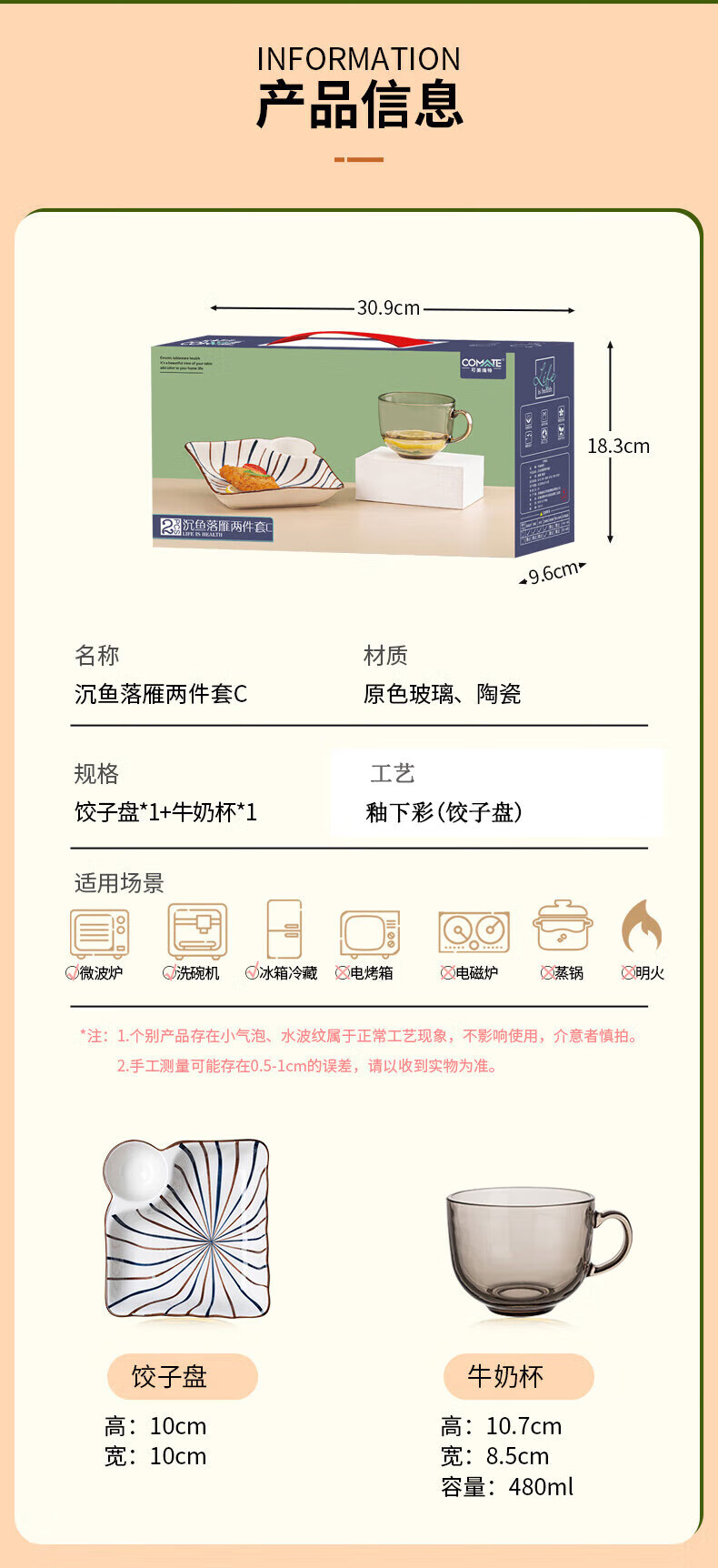 产品尺寸 :奶杯10.7cm/饺子盘17.8cm