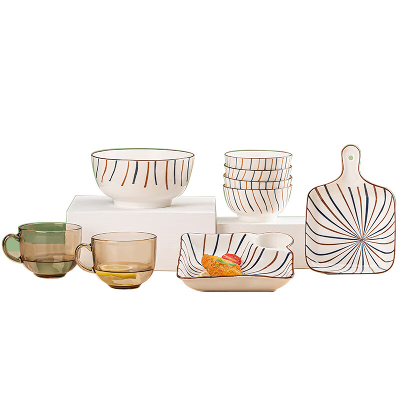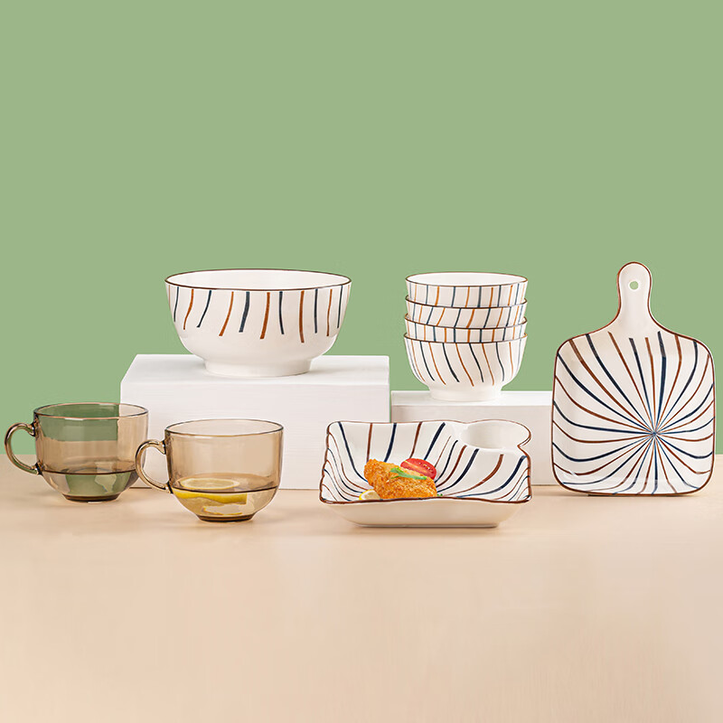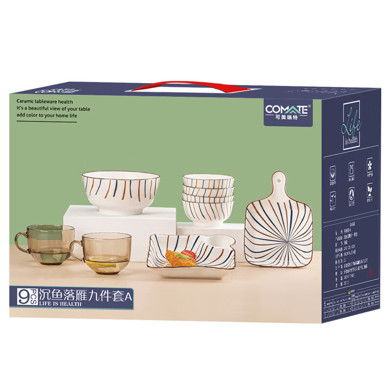 可美瑞特(COMATE)沉鱼落雁九件套A 大碗1400ml*1+碗360ml*4+手柄盘*1+饺子盘*1+奶杯480ml*2 YTCYLY/L9A
