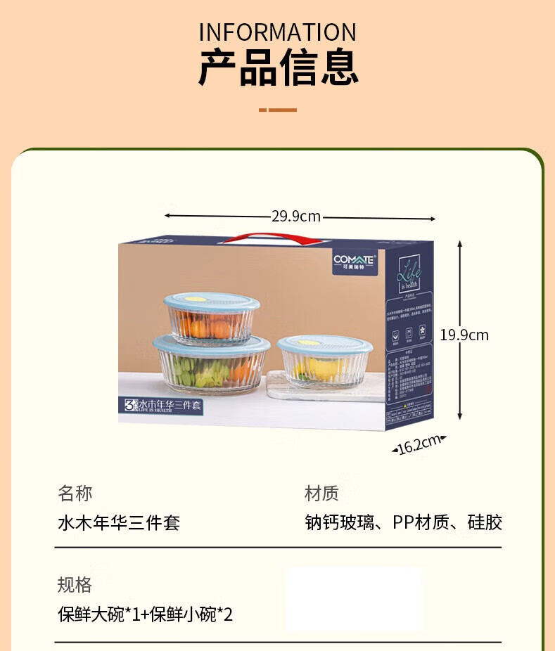 商品名称:可美瑞特(COMATE)水木年华三件套 大碗1200ml*1+小碗550ml*2 YTSMNH/L3