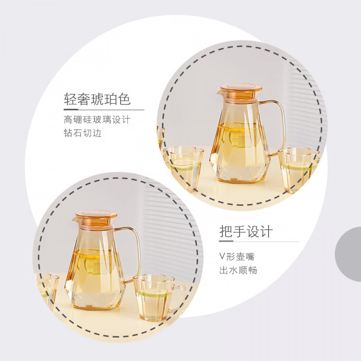 可美瑞特(COMATE)前程似锦高硼壶五件套 把杯260ml*4+高硼硅壶1500ml*1 YTQCSJGPH/L5