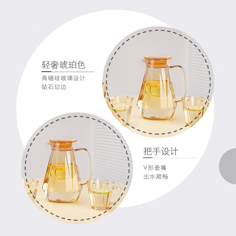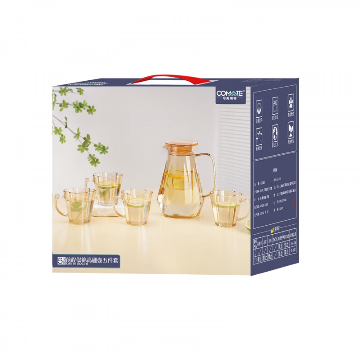 商品名称:可美瑞特(COMATE)前程似锦高硼壶五件套 把杯260ml*4+高硼硅壶1500ml*1 YTQCSJGPH/L5