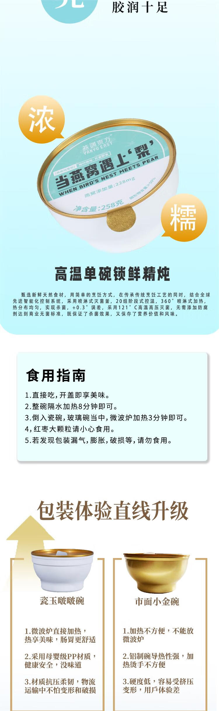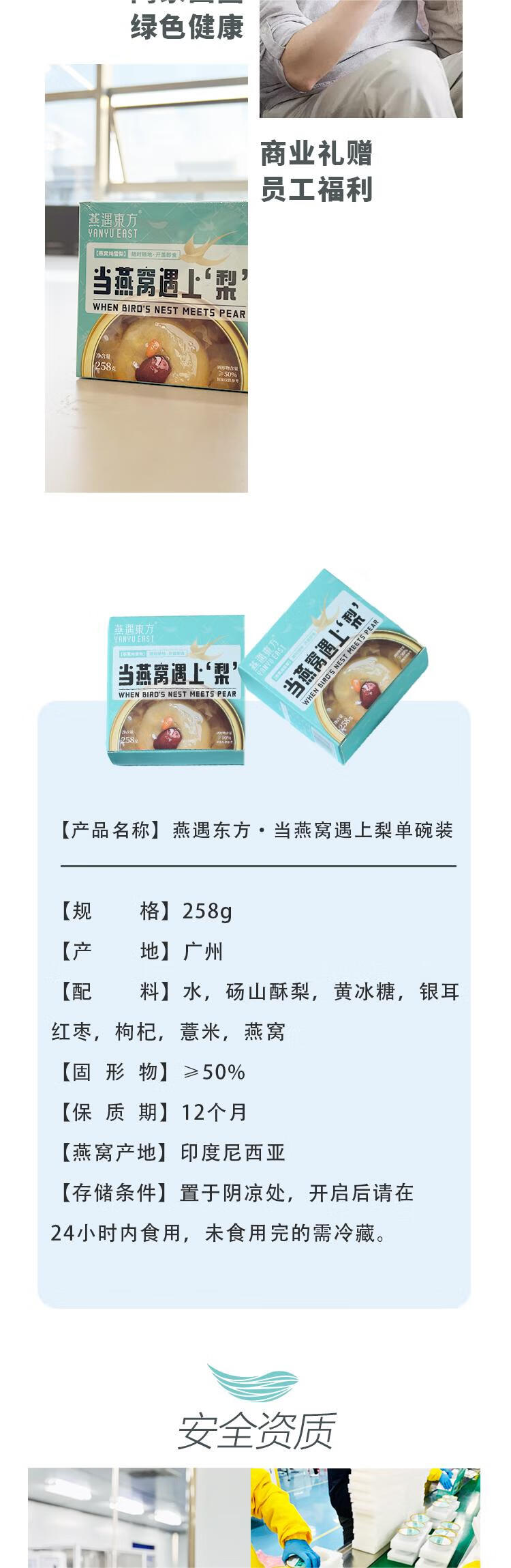 商品名称:燕遇东方 当燕窝遇上梨 单碗装 258g (2碗起发)