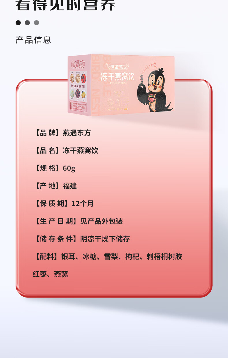 商品名称:燕遇东方 冻干燕窝饮(5包装)900g