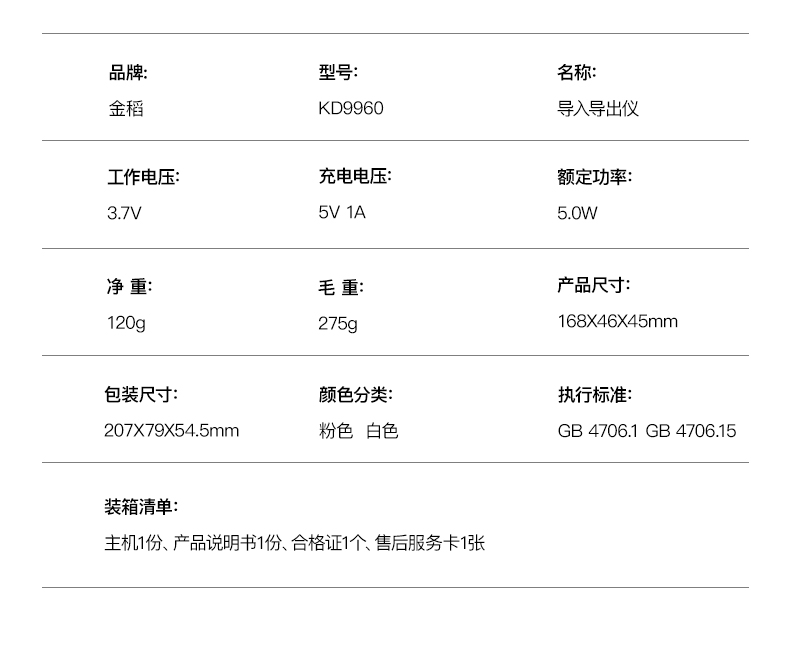 商品名称:金稻 导入导出美容仪 KD9960 5W