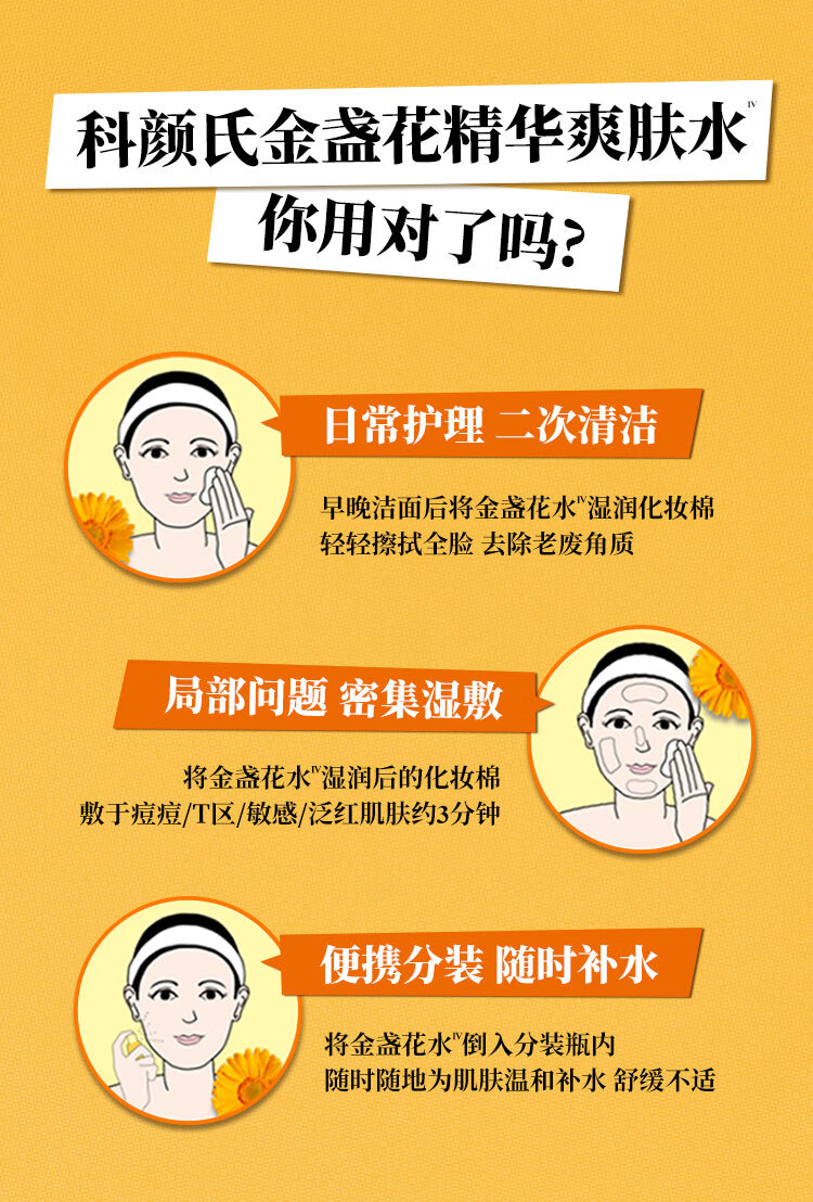 包装清单(套装) :金盏花植萃爽肤水250ml 高保湿清爽霜50ml