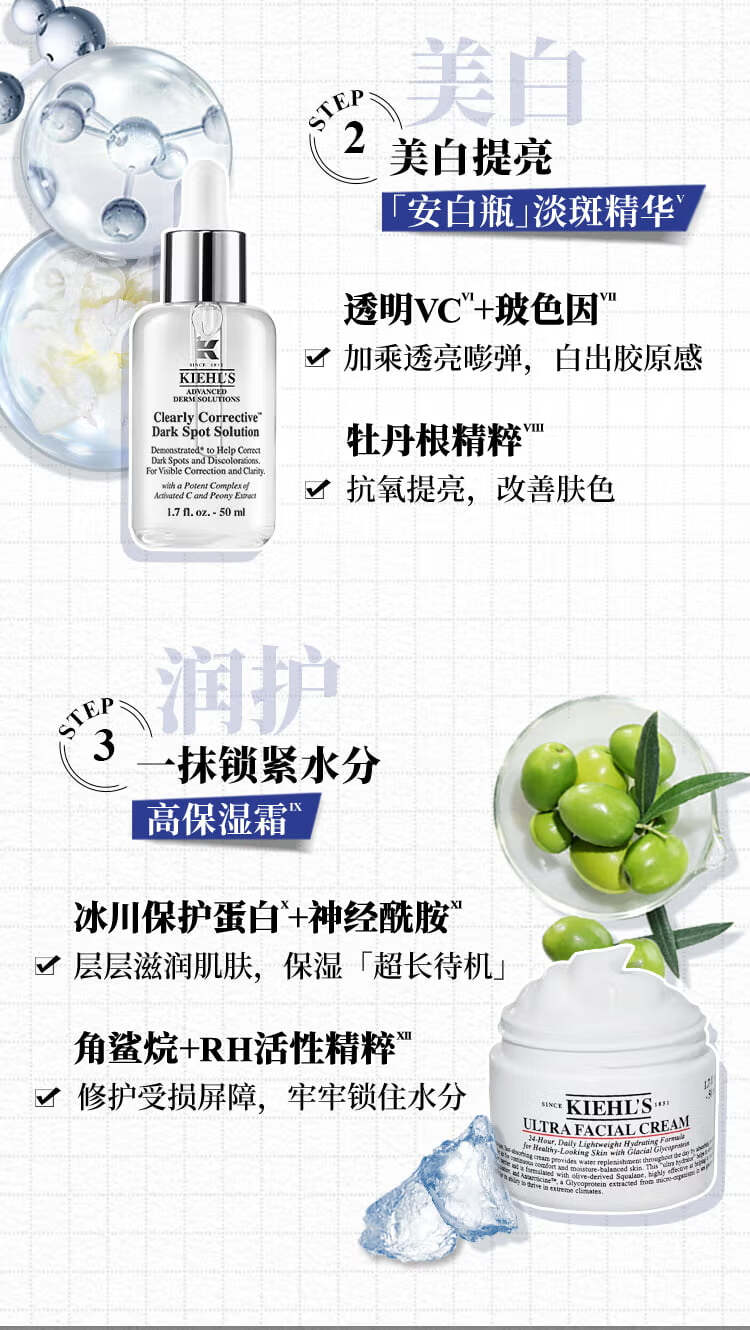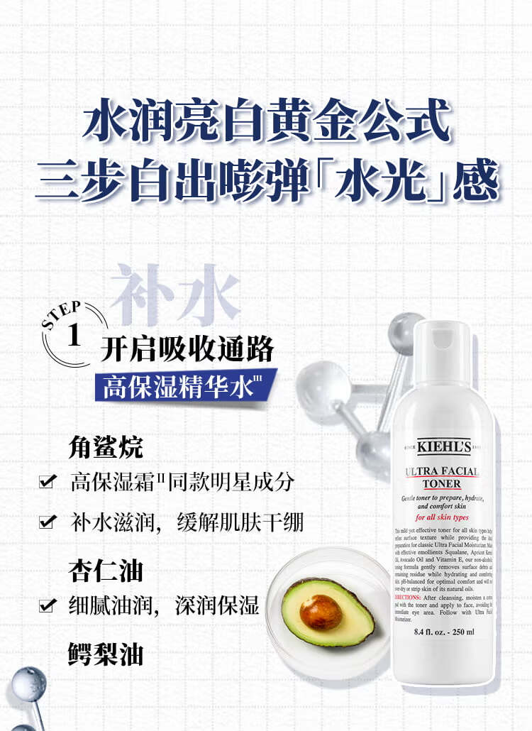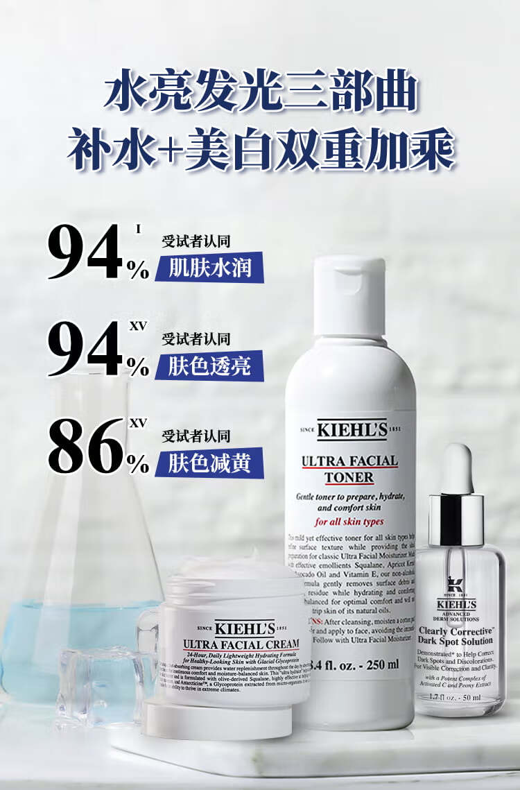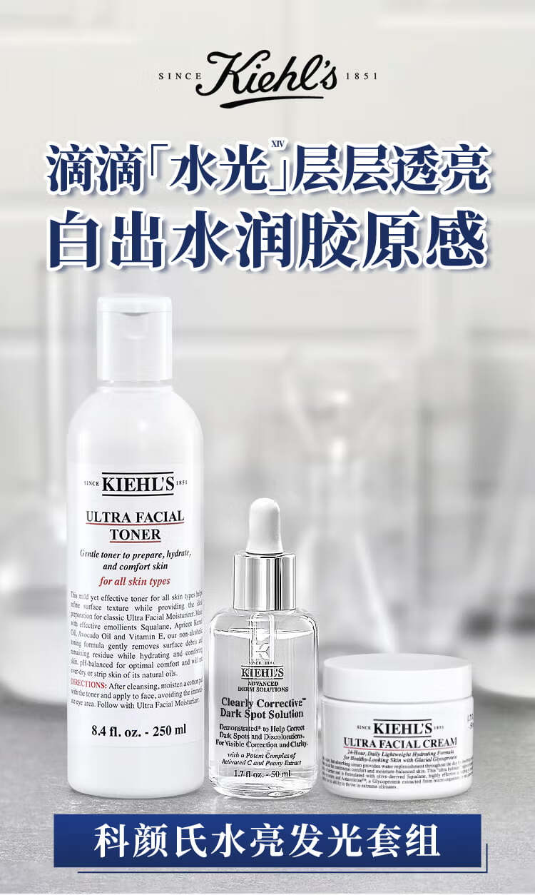 商品名称:科颜氏 高保湿精华爽肤水250ml(高保水) 高保湿面霜50ml(小高保) 新集焕白均衡亮肤淡斑精华液50ml