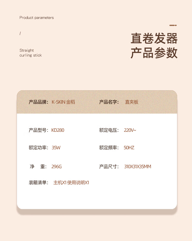 商品名称:金稻 高端负离子直发器(新品)KD280 35W