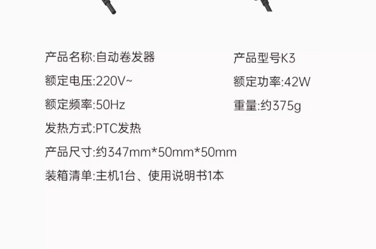 商品名称:金稻 负离子自动卷发棒 K3 42W