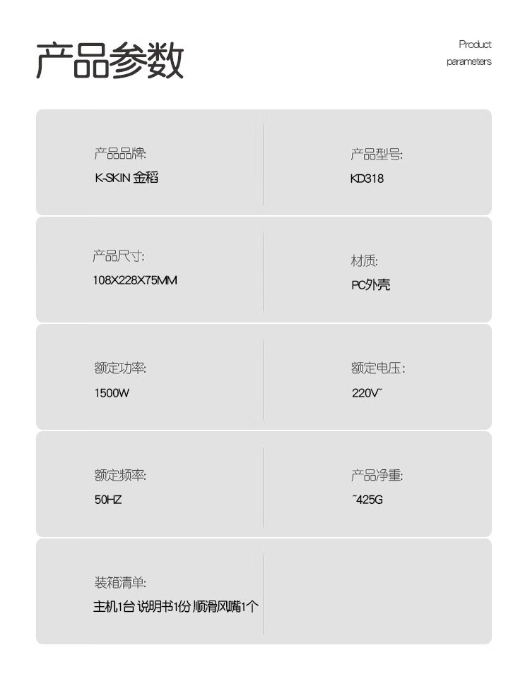 商品名称:金稻 负离子吹风机 KD318 1600W