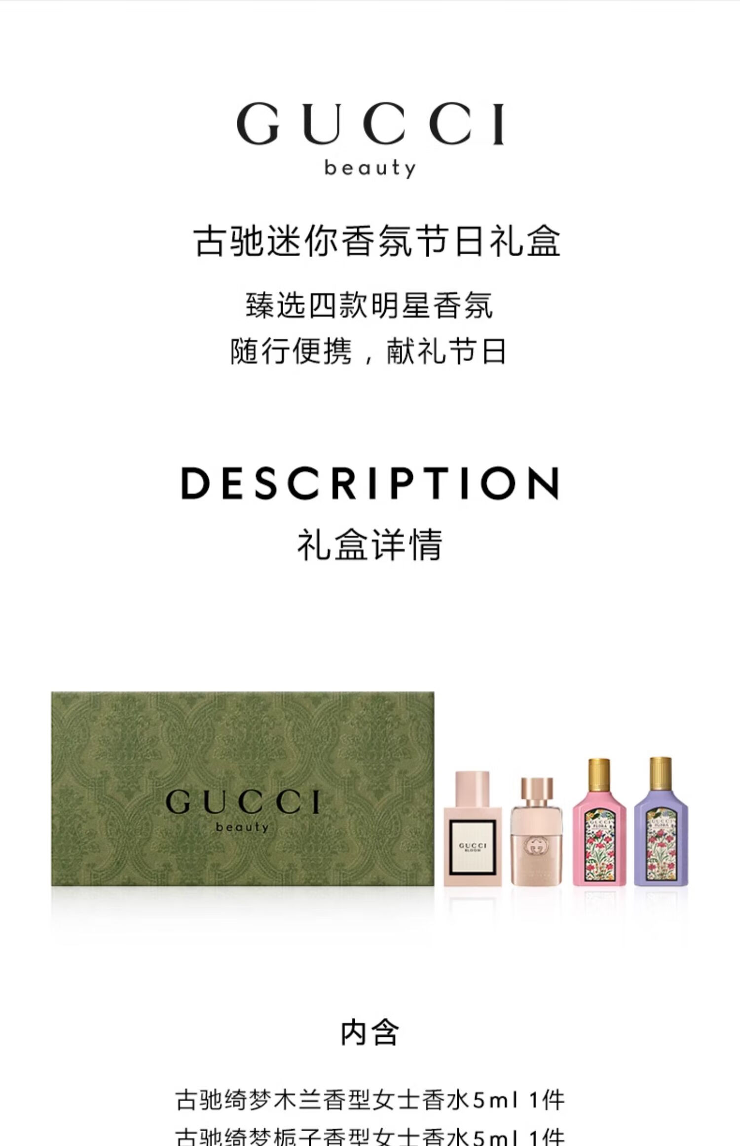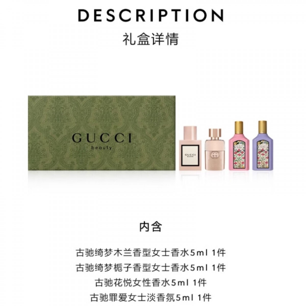 商品名称:古驰 香水四件套5ml*4