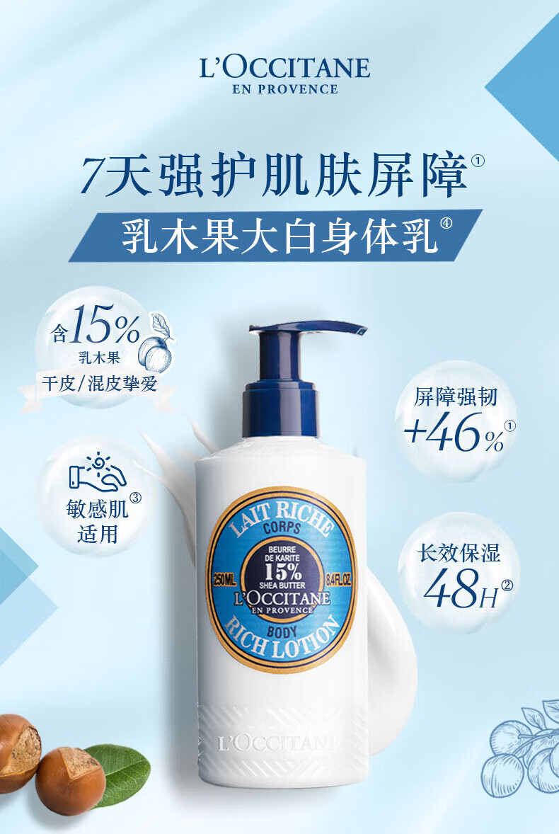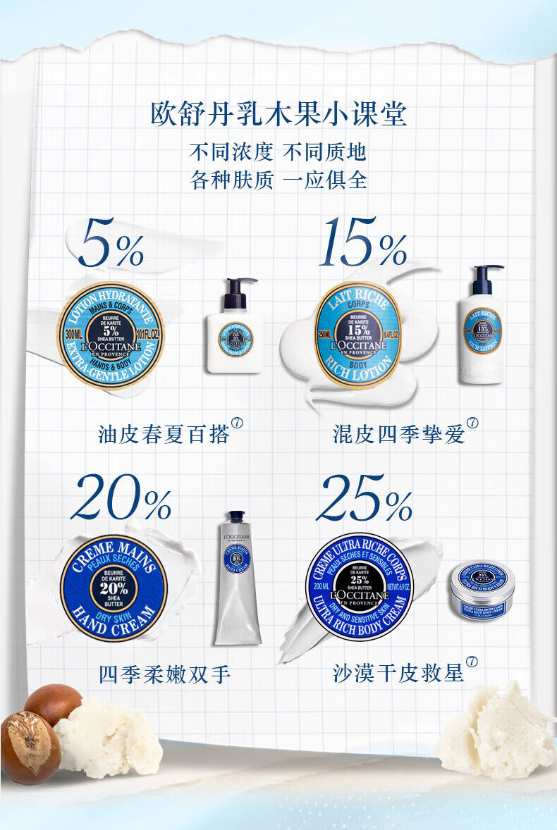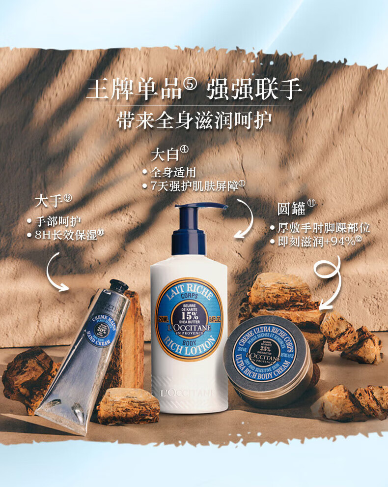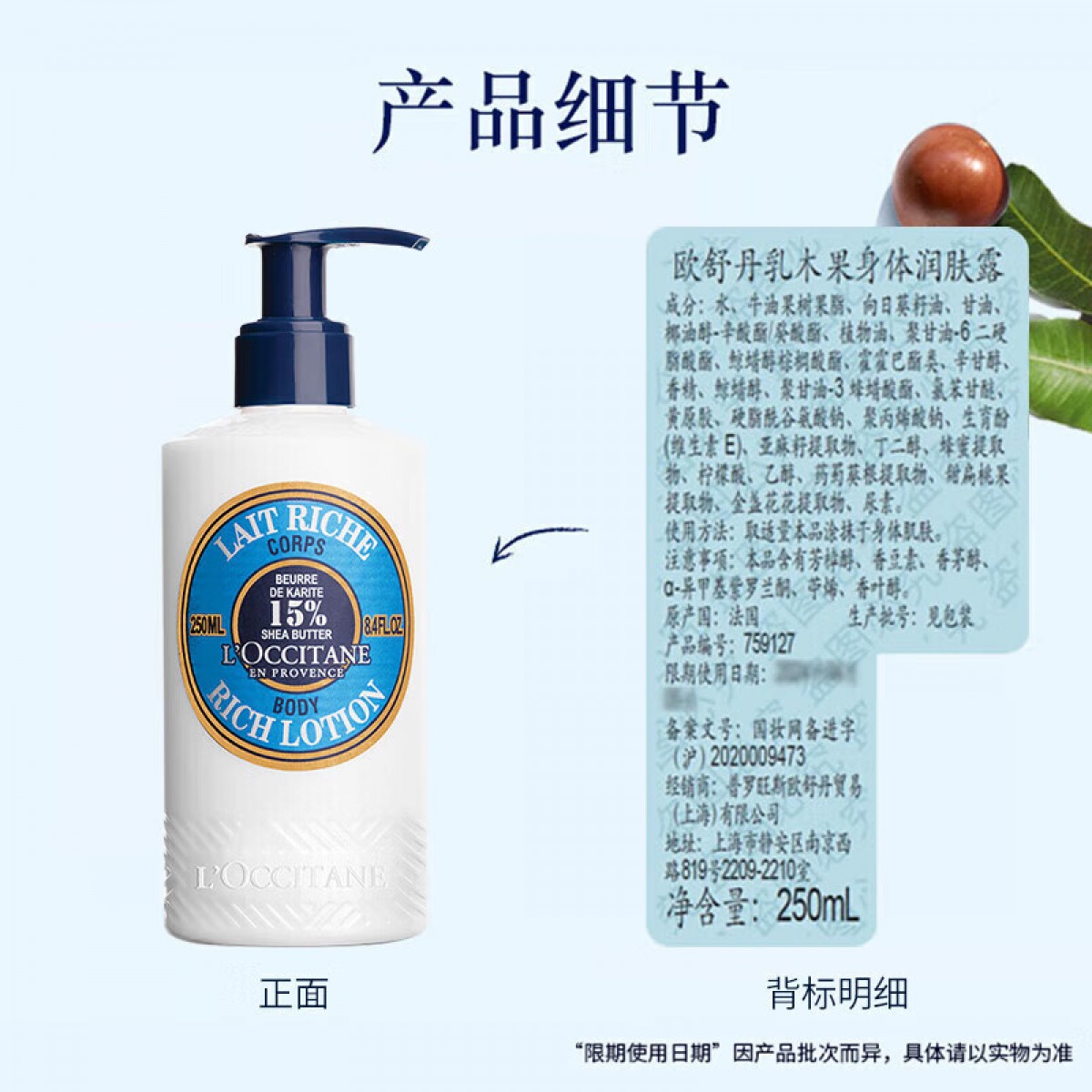 包装清单(套装) :欧舒丹乳木果经典润手霜150ml +乳木果润肤露250ml