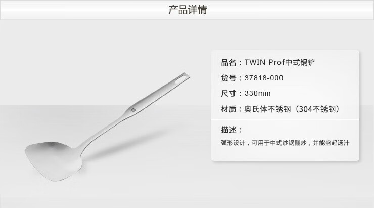 商品名称:德国双立人Twin Prof不锈钢中式锅铲钢铲炒菜铲子 37818-000P