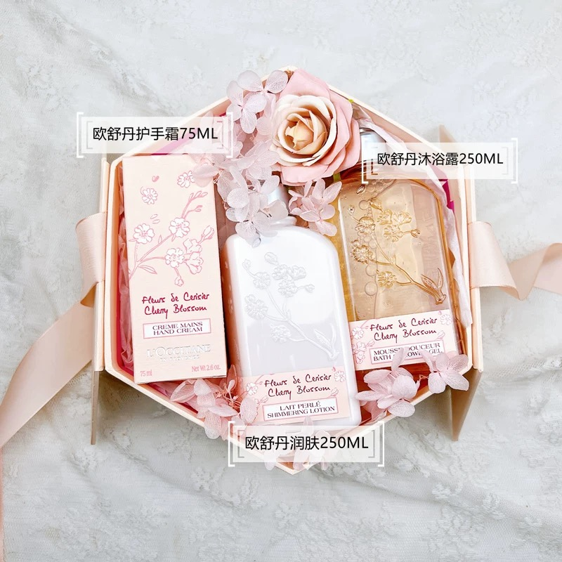 女神节礼盒9 欧舒丹润手霜75ml 樱花沐浴啫喱250ml 樱花润肤露250ml