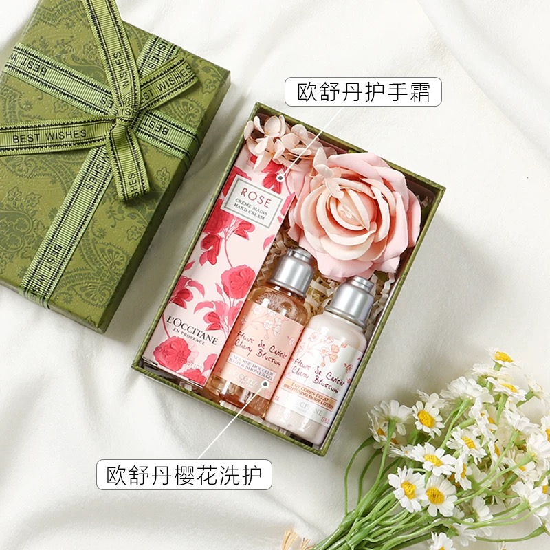 女神节礼盒11 欧舒丹润手霜30ml 樱花沐浴35ml+体乳35ml