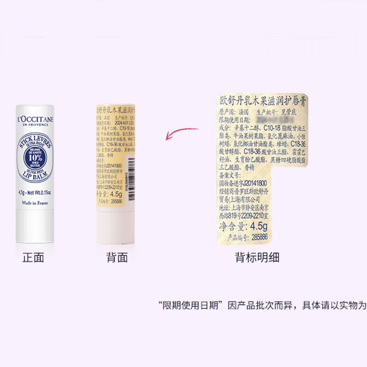 包装清单(套装) :欧舒丹润手霜30ml +唇膏4.5+洗发+护发50ml