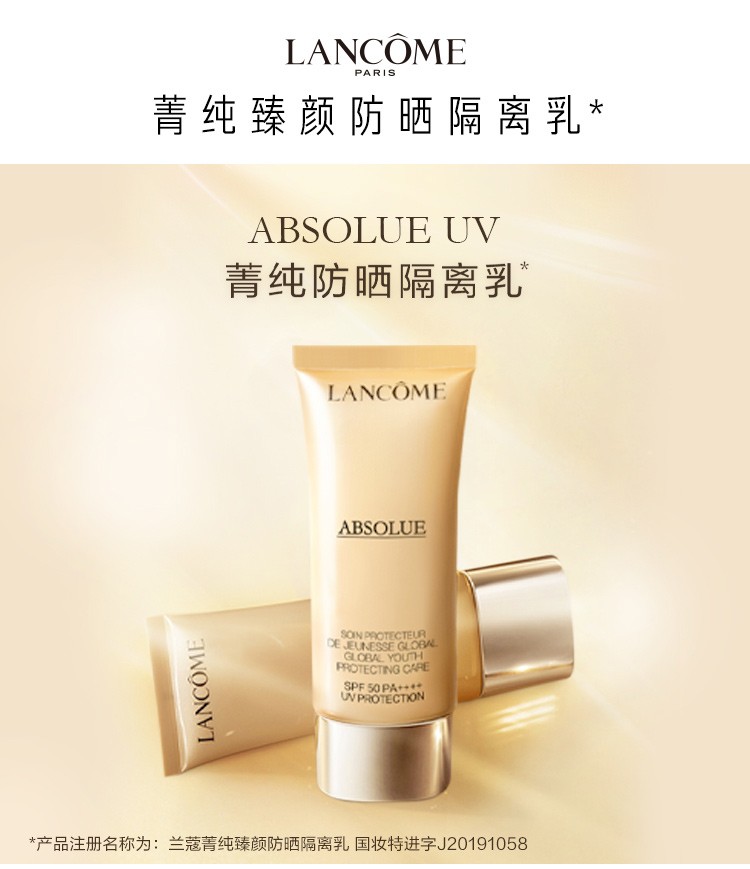 商品名称:兰蔻 菁纯臻颜防晒隔离乳SPF50+/PA++++ 50ml