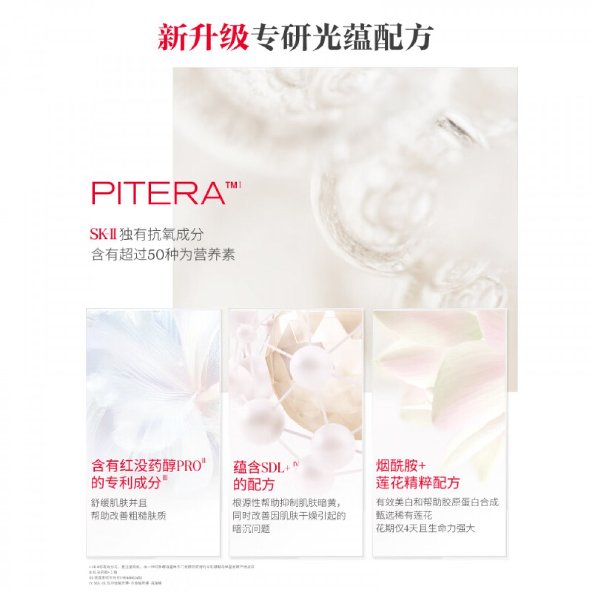 包装清单(套装) :SK-II 光蕴环采钻白精华露50ml(小灯泡)