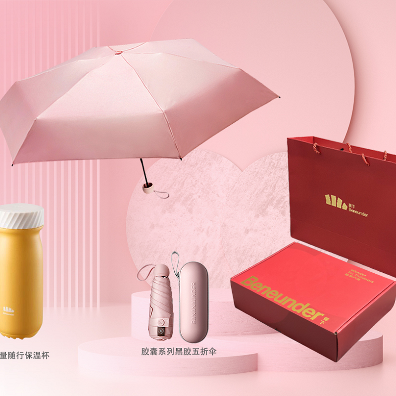 户外轻量随行保温杯LC131*1+胶囊系列黑胶五折伞-纯色*1+蕉下定制礼盒礼袋套装*1