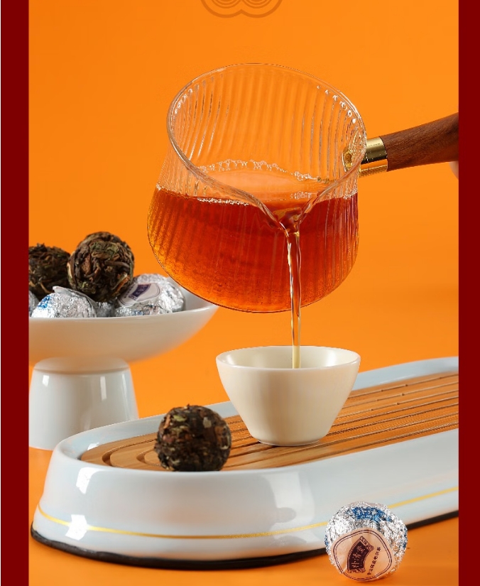① 喜乐杯 ×1个 ② 顺遂杯 ×1个 ③ 姓氏茶·龙珠单粒陈皮白茶5g ×18颗 ④ 精美礼盒×1个 ⑤ 心意手袋×1只