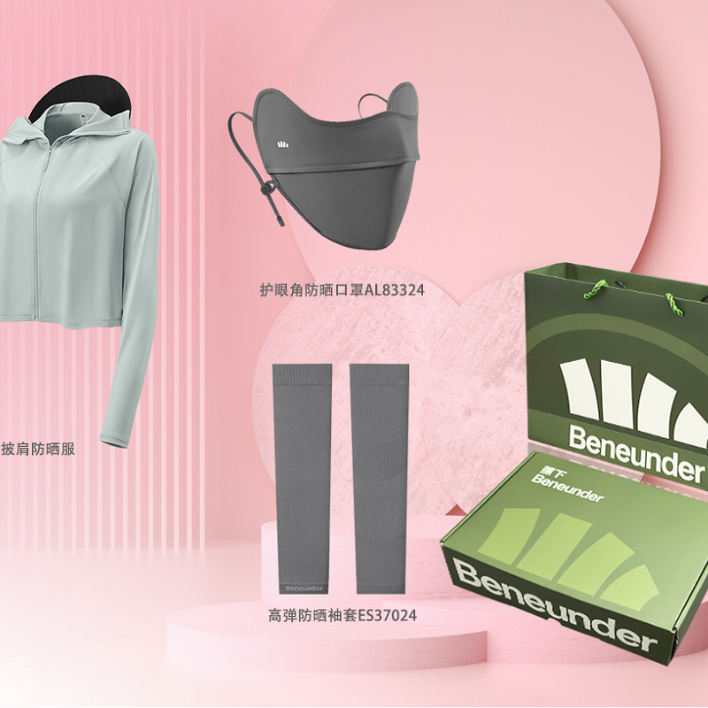 包装清单 :如荫女士户外披肩防晒服*1+高弹防晒袖套ES37024*1 +凉感护眼角防晒口罩AL83324+蕉下定制礼盒礼袋套装*1