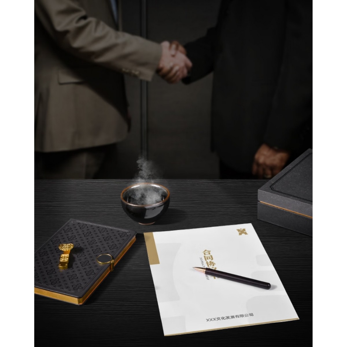 包装清单 :① 玄金如意笔(黑檀)×1支 ② 如意笔记本×1本 ③ 乌金建盏主人杯×1个 ④ 如意优盘32g×1个 ⑤ 精美礼盒×1个 ⑤ 心意手袋×1个