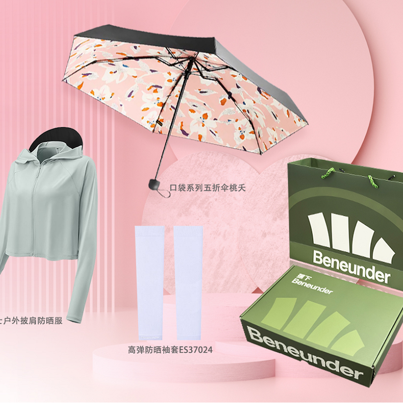口袋系列五折伞-桃夭*1+如荫女士户外披肩防晒服*1 +高弹防晒袖套ES37024+蕉下定制礼盒礼袋套装*1