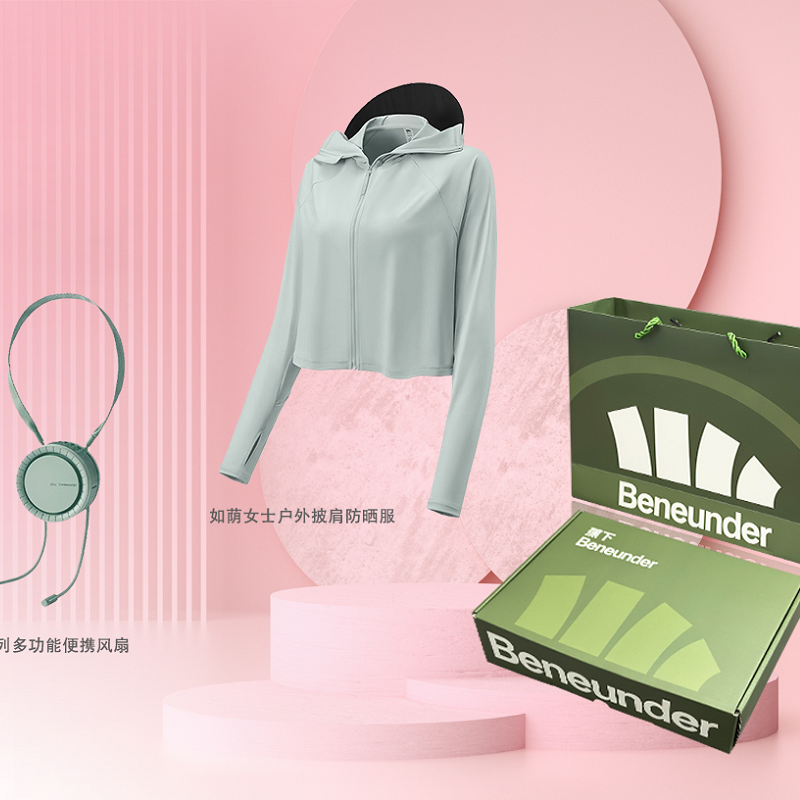 包装清单 :拂沨系列多功能便携风扇*1+如荫女士户外披肩防晒服*1 +蕉下定制礼盒礼袋套装*1