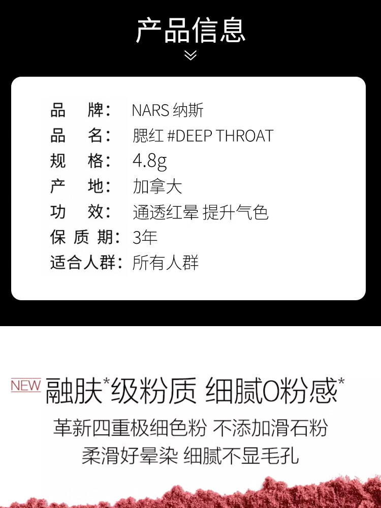 商品名称:纳斯 腮红 柔粉色 4.8g(深喉-4016 Deep Throat)/(高潮-4013 orgasm)