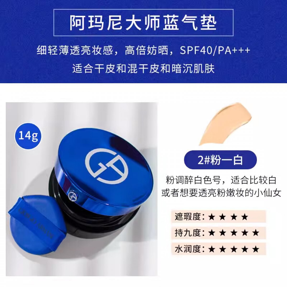 商品名称:阿玛尼 大师造型轻垫粉底液14g(蓝标气垫) #2 SPF45 /#3 SPF45