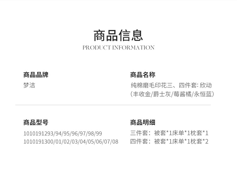 商品名称:梦洁家纺 纯棉磨毛印花四件套 欣动 10101913