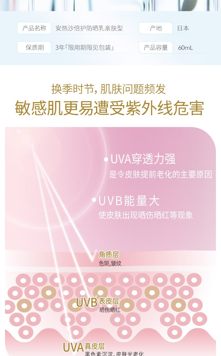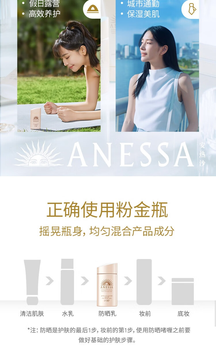 商品名称:资生堂 安热沙金灿倍护防晒乳60ml(新版小金瓶防晒)