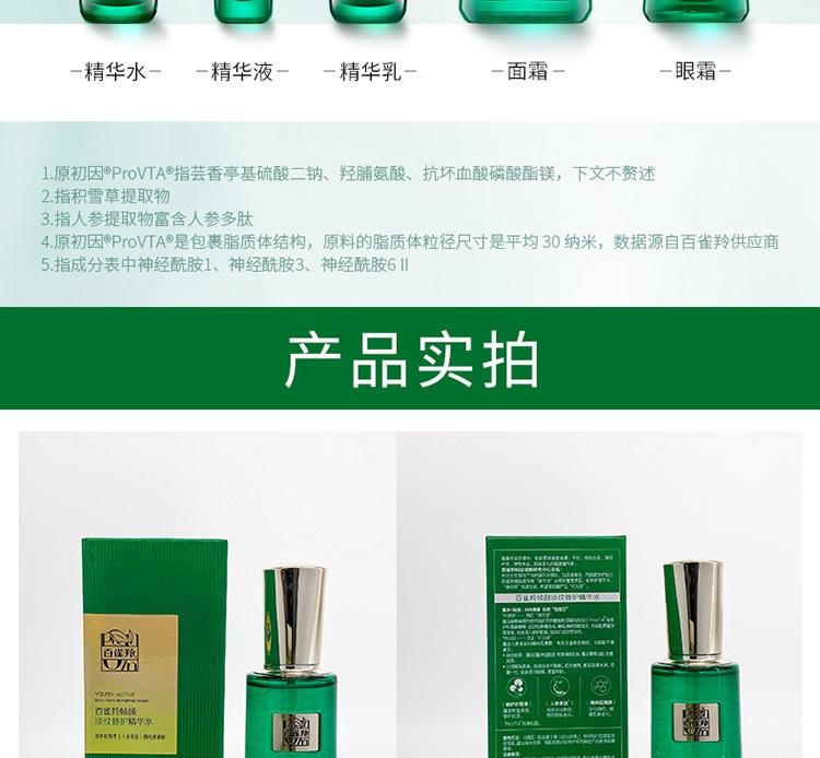 规格 :百雀羚草本帧颜淡纹修护精华水 100ml 赠:精华乳20ml*1+精华液1ml*2