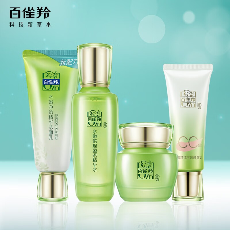 规格 :百雀羚水嫩净透精华洁面乳 95g+百雀羚水嫩倍现盈透精华水100ml 百雀羚水嫩倍现保湿精华霜 50g+百雀羚洁面两用乳 /cc霜/眼部精华液(随机一款)