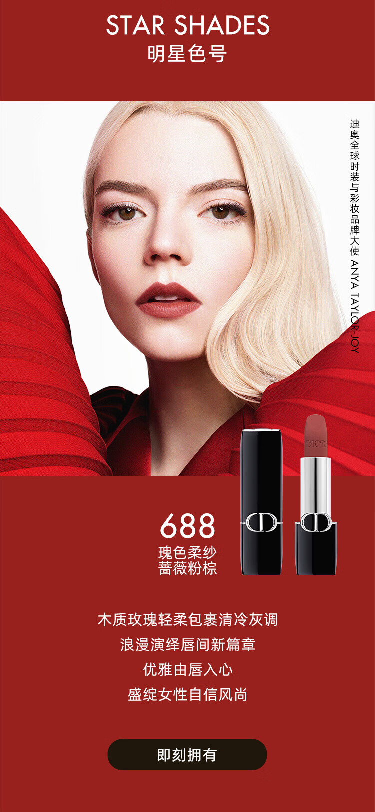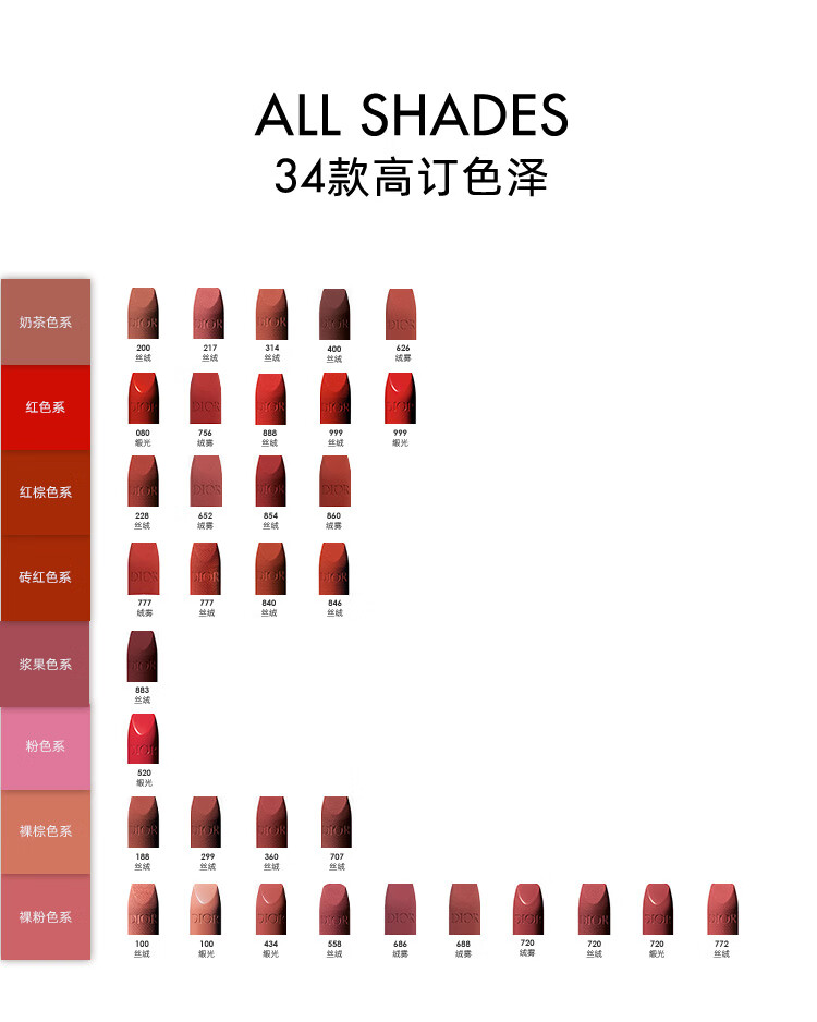 包装清单(套装) :克丽丝汀迪奥 烈艳蓝金唇膏 3.5g 888哑光/ 999缎光/999丝绒 /999哑光/720丝绒/840丝绒/772哑光