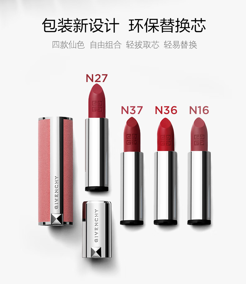 包装清单(套装) :纪梵希 高定香榭/高定香榭粉丝绒/高定香榭红丝绒 唇膏 3.4g