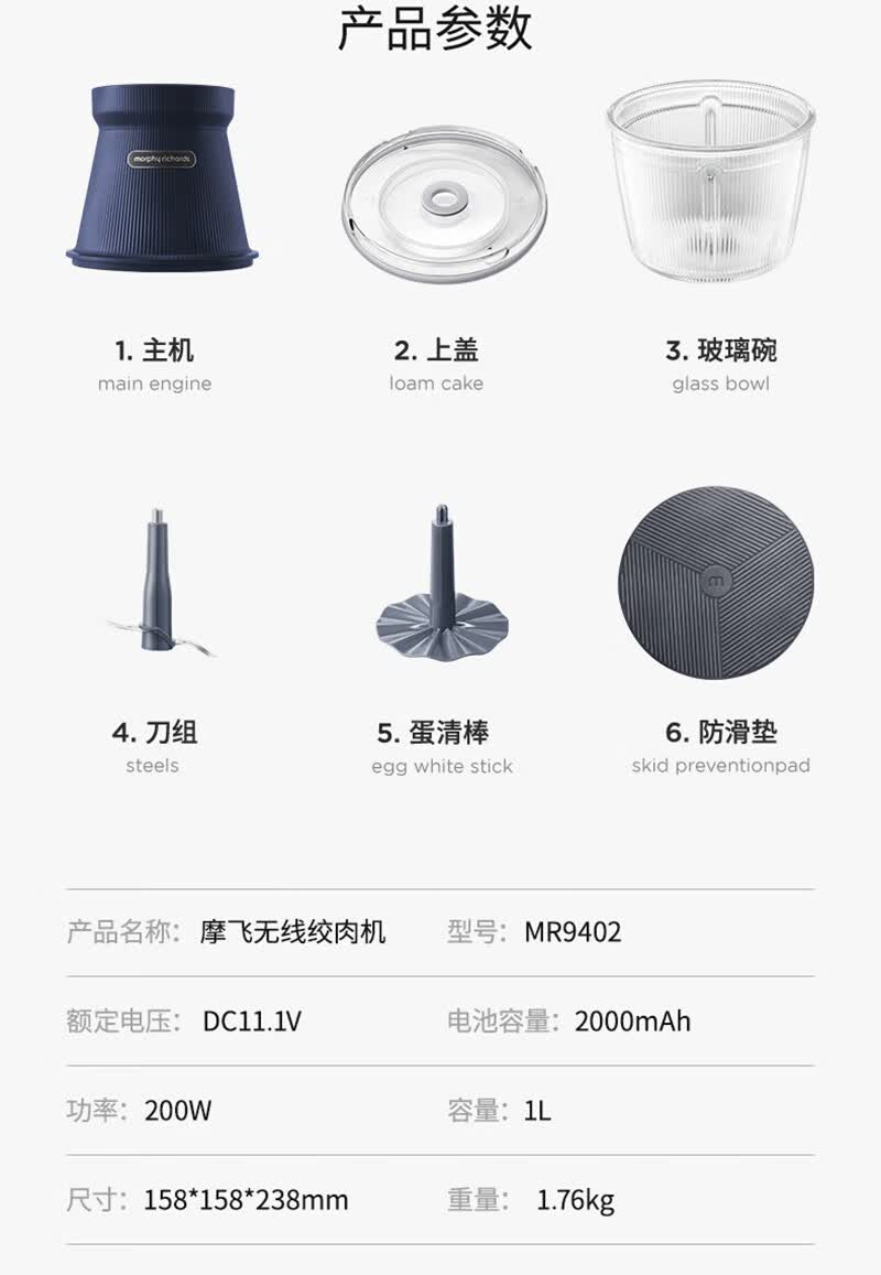商品名称:摩飞(Morphyrichards)无线绞肉机 MR9402
