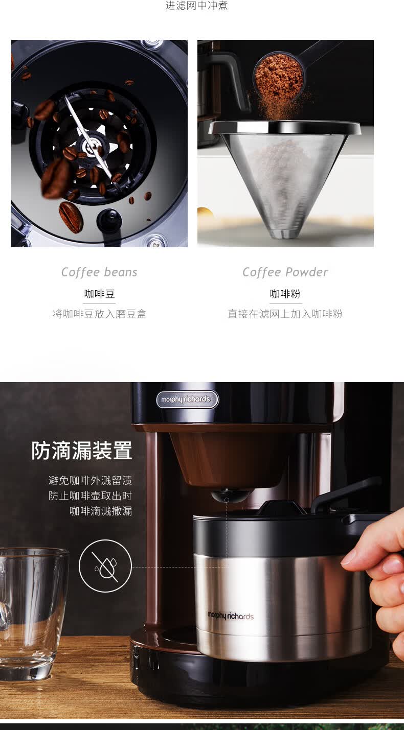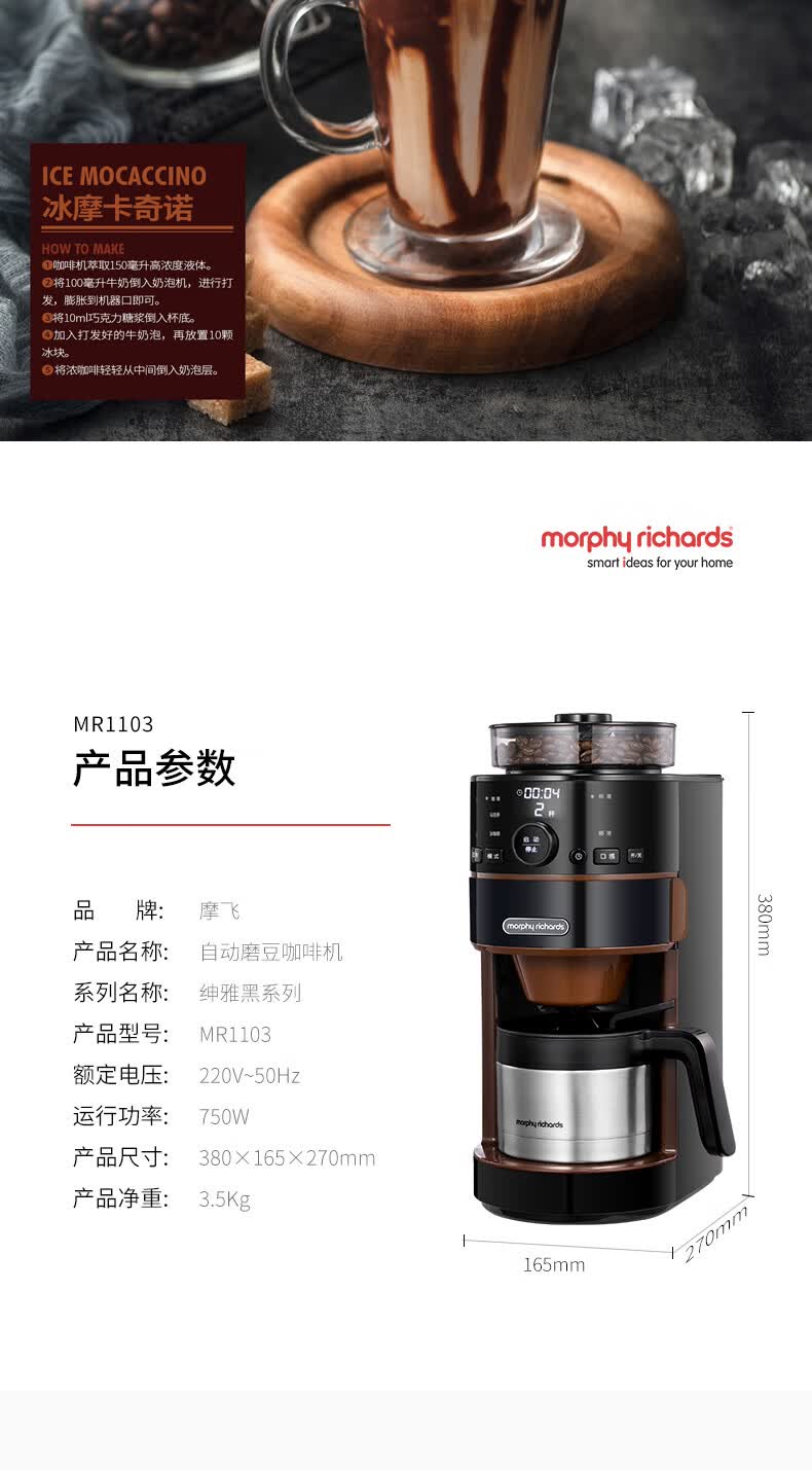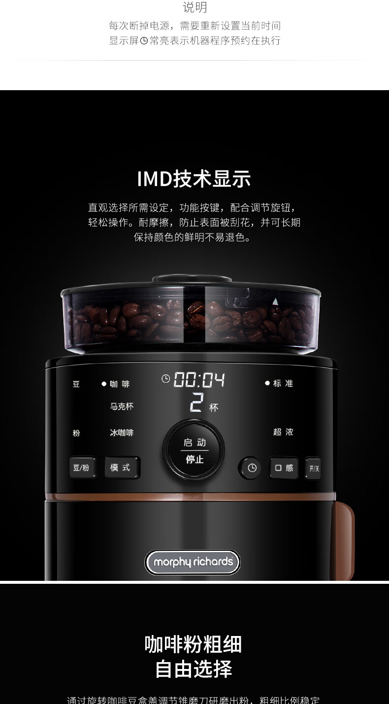商品名称:摩飞电器(Morphyrichards) 自动磨豆咖啡机 MR1103