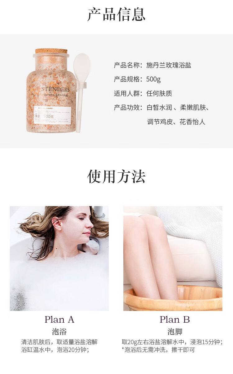 包装清单(套装) :施丹兰 玫瑰/薰衣草 沐浴盐500g