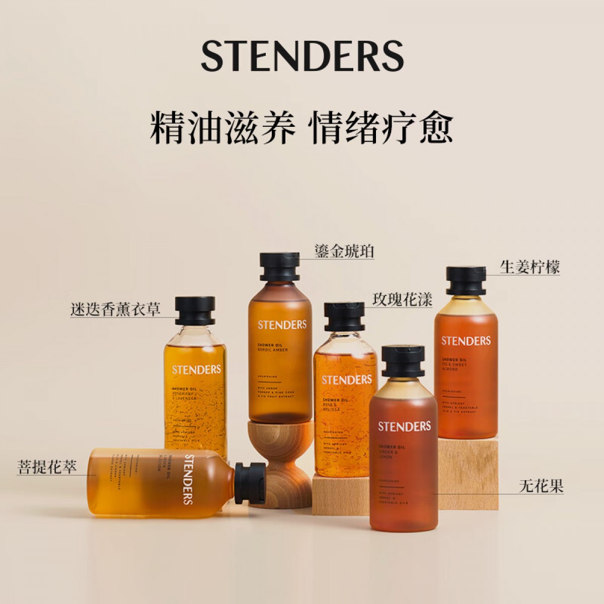 包装清单(套装) :施丹兰 玫瑰花漾/无花果/生姜柠檬/菩提花精粹/薰衣草 沐浴油 245ml
