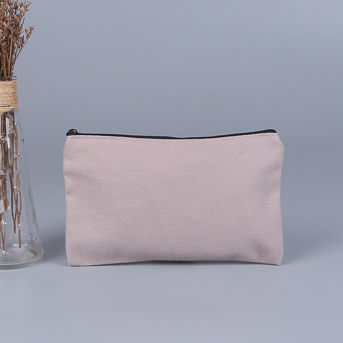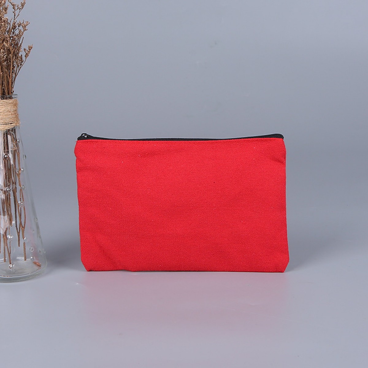 帆布笔袋亚马逊跨境手提拉链帆布笔袋学生空白棉布袋女士化妆品包 21*13cm(灰色/黄色/红色/绿色)