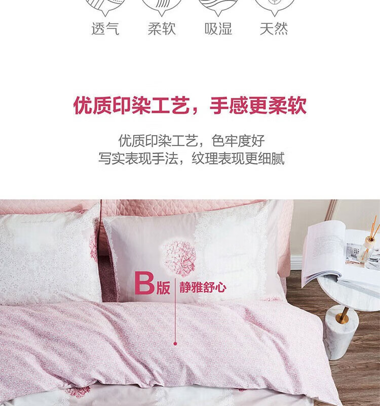 罗莱家纺(LUOLAI)缤纷花音全棉四件套 200*230cm
