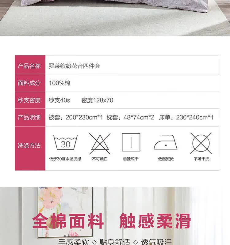 商品名称:罗莱家纺(LUOLAI)缤纷花音全棉四件套 200*230cm
