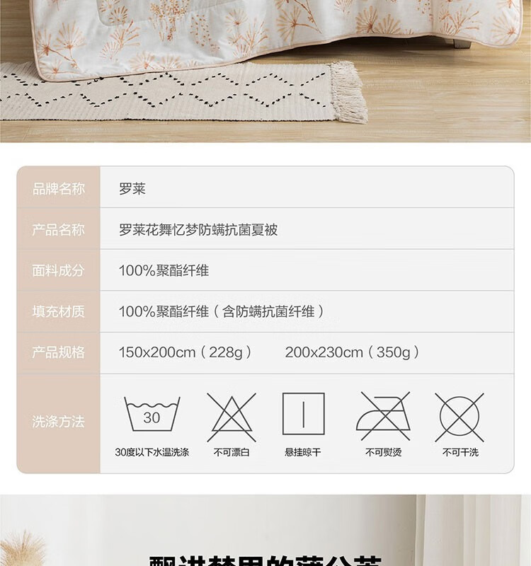 商品名称:罗莱(LUOLAI) 花舞忆梦防螨抗菌夏被150*200cm