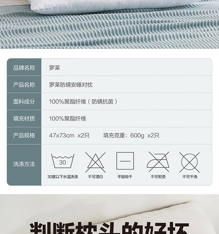 商品名称:罗莱(LUOLAI) 防螨安睡对枕 47*73cm