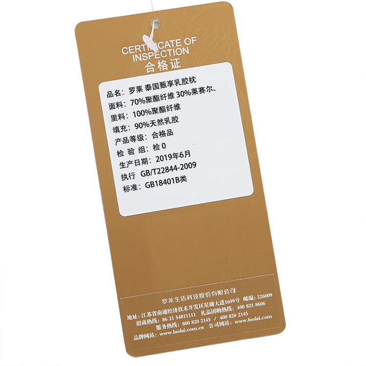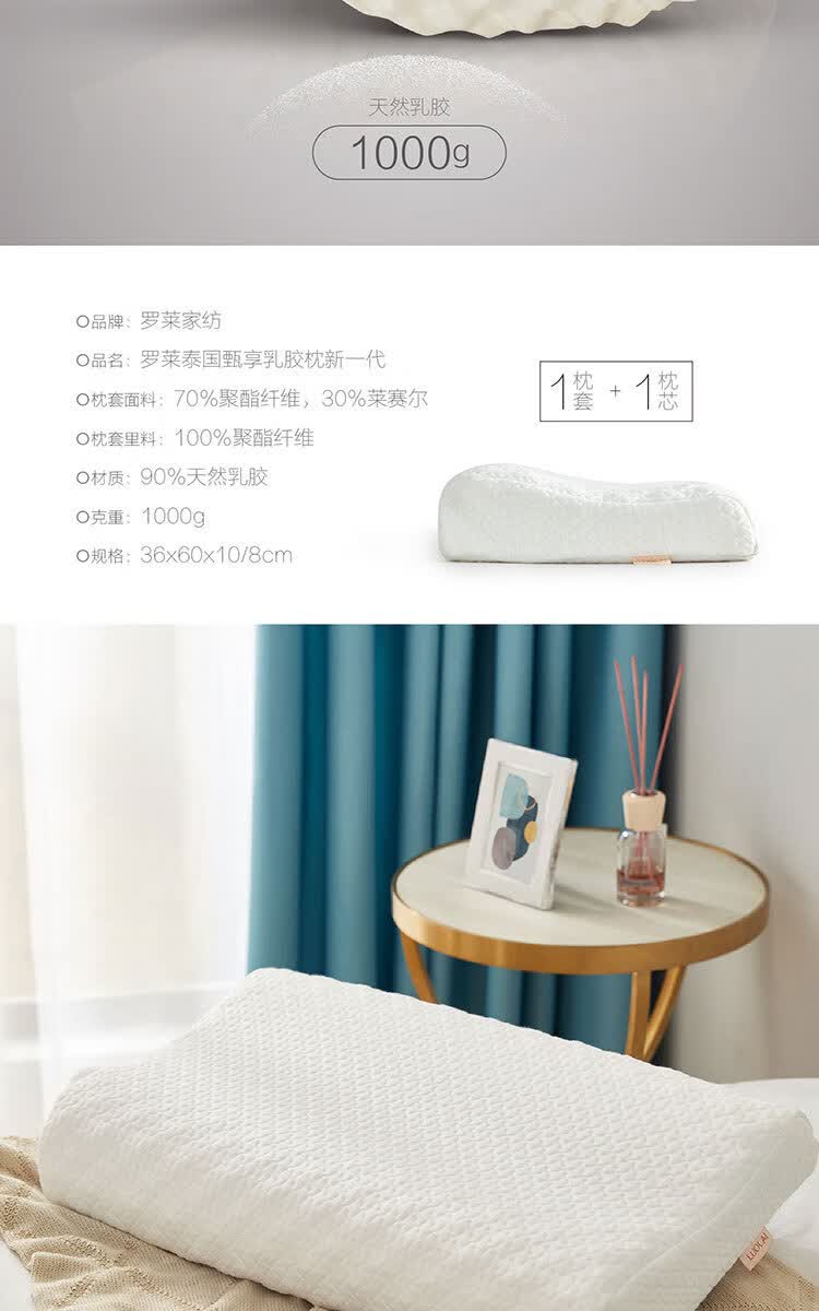商品名称:罗莱家纺LUOLA 泰国甄享乳胶枕 36*60*10/8cm